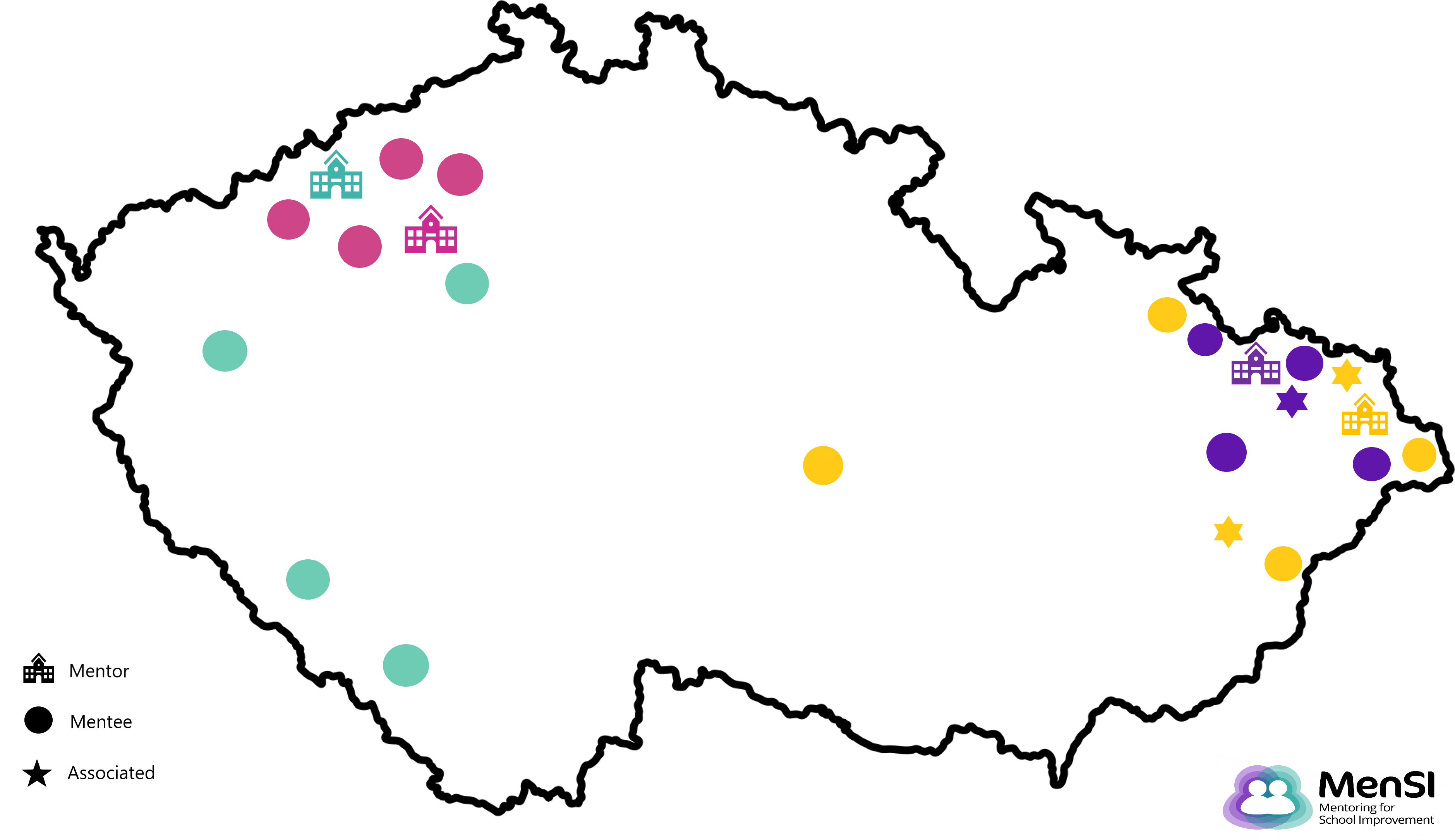 - Vytvořit a koordinovat síť více než 100 mentorujících a mentee škol, které budou pilotovat různé přístupy k řešení určitých výzev.