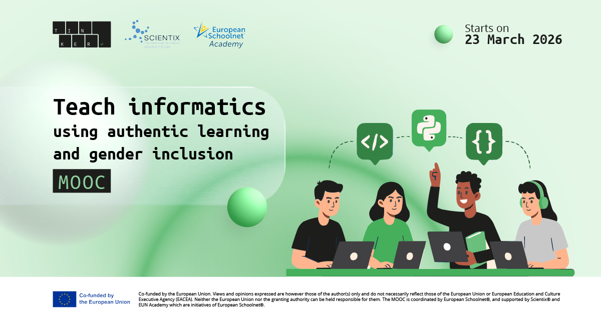 MOOC „Teach Informatics Using Authentic Learning and Gender Inclusion“ vznikl v rámci projektu TINKER (auThentIc learNing and gender inclusive frameworK for tEaching infoRmatics in schools across Europe) s podporou Scientix®. Kurz je navržen tak, aby pomohl učitelům posílit jejich výukovou praxi v informatice prostřednictvím evidence-based přístupů, které kombinují autentické učení s genderově inkluzivními strategiemi.